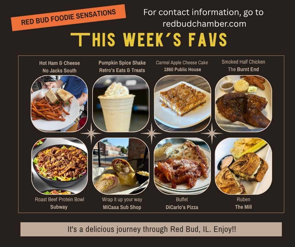 This week's highlights showcase the culinary delights of Red Bud. Don't miss the chance to discover the exceptional flavors this charming town has to offer. There's so much more waiting for you beyond what you see below—venture out and indulge in a tasty dining experience!