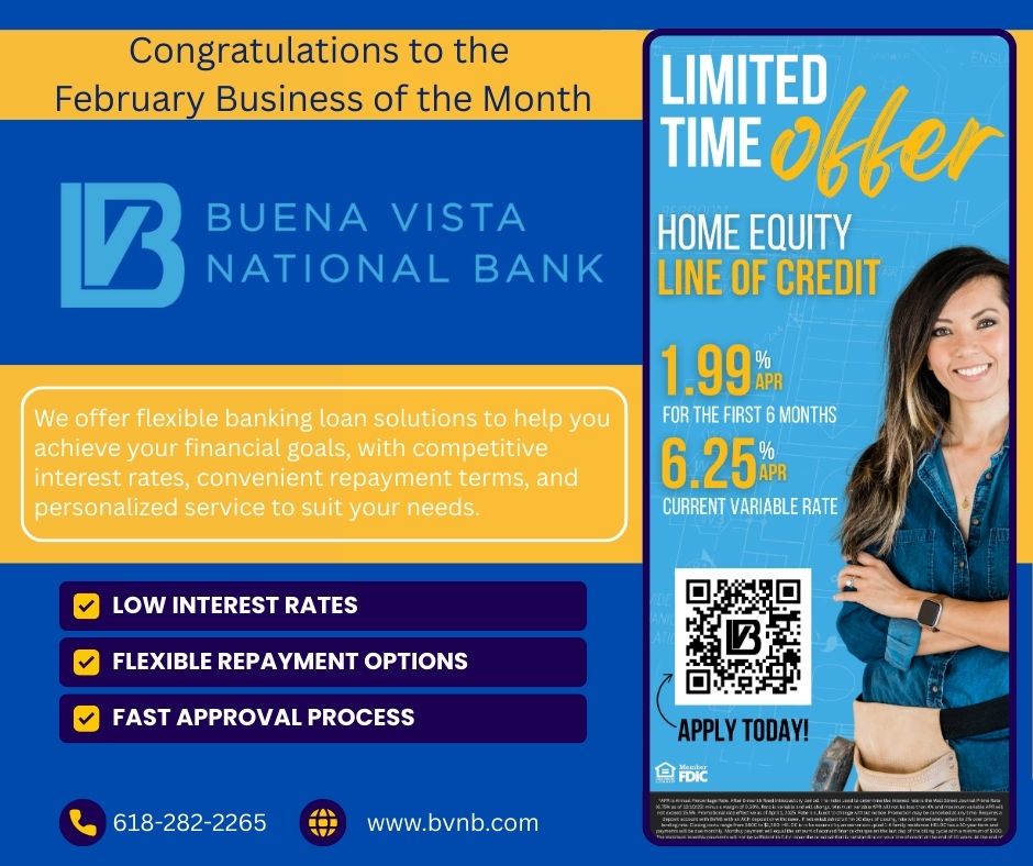 Help us congratulate Buena Vista. They have been selected as the February Business of the Month. February 3, 2026 in Business of the Month