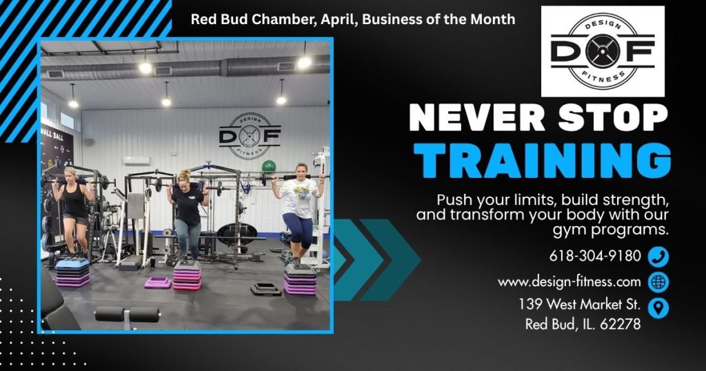 Red Bud Chamber, April – Business of the Month, Design Fitness April 14, 2026 in Business of the Month Push your limits, build strength, and transform your body with Design Fitness gym programs.