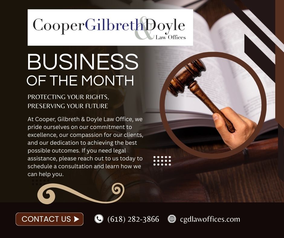 Please help us congratulate Rebecca and Richard Cooper of Cooper Gilbreth and Doyle Law Offices. Red Bud Chamber, December Business of the Month Home / News /